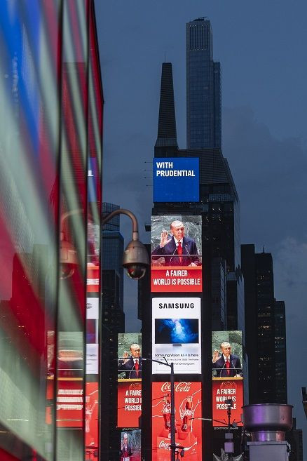 Erdoğan’ın “Daha adil bir dünya mümkün” ve “Dünya 5’ten büyüktür” ifadeleri New York cadde ve sokaklarında yer aldı.