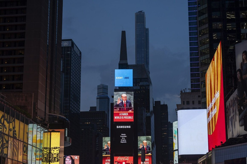 New York’un merkezindeki cadde ve sokaklar ile Times Meydanı’ndaki led ekranlarda İngilizce olarak “A Fairer World Is Possible” (Daha Adil Bir Dünya Mümkün) sözü yansıtıldı.