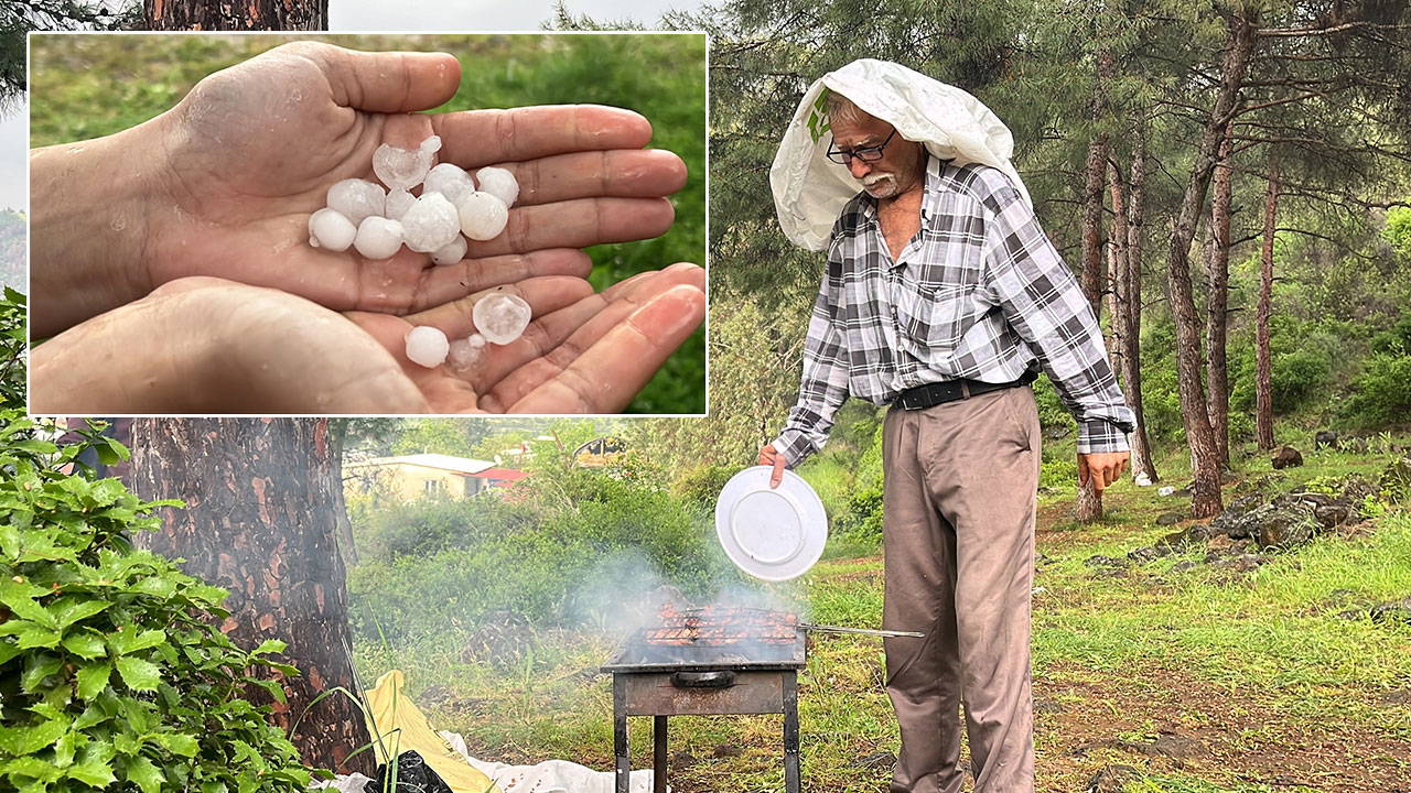 Yağışa rağmen mangal yapmadan evine dönmeyeceğini belirten Savaş Yıldırım ise, “Yağış bir anda geldi geçti. Herkes panik yapıp gitti, ama ben buraya kadar geldim, mangal yemeden gitmem. Dolular gülle büyüklüğündeydi, bereket yağıyor” dedi.